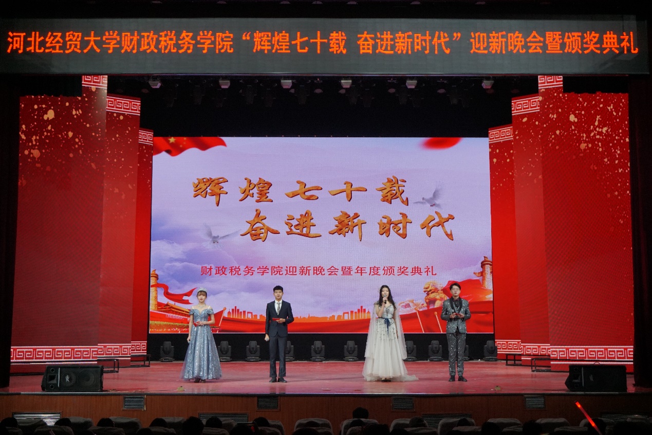 12月24日,bg大游官方网站在校礼堂举办“辉煌七十载 奋进新时代”迎新晚会暨年度颁奖典礼。公司党委副书记刘贵来、副经理温立洲、公司老师和公司18、19级全体同学参加。