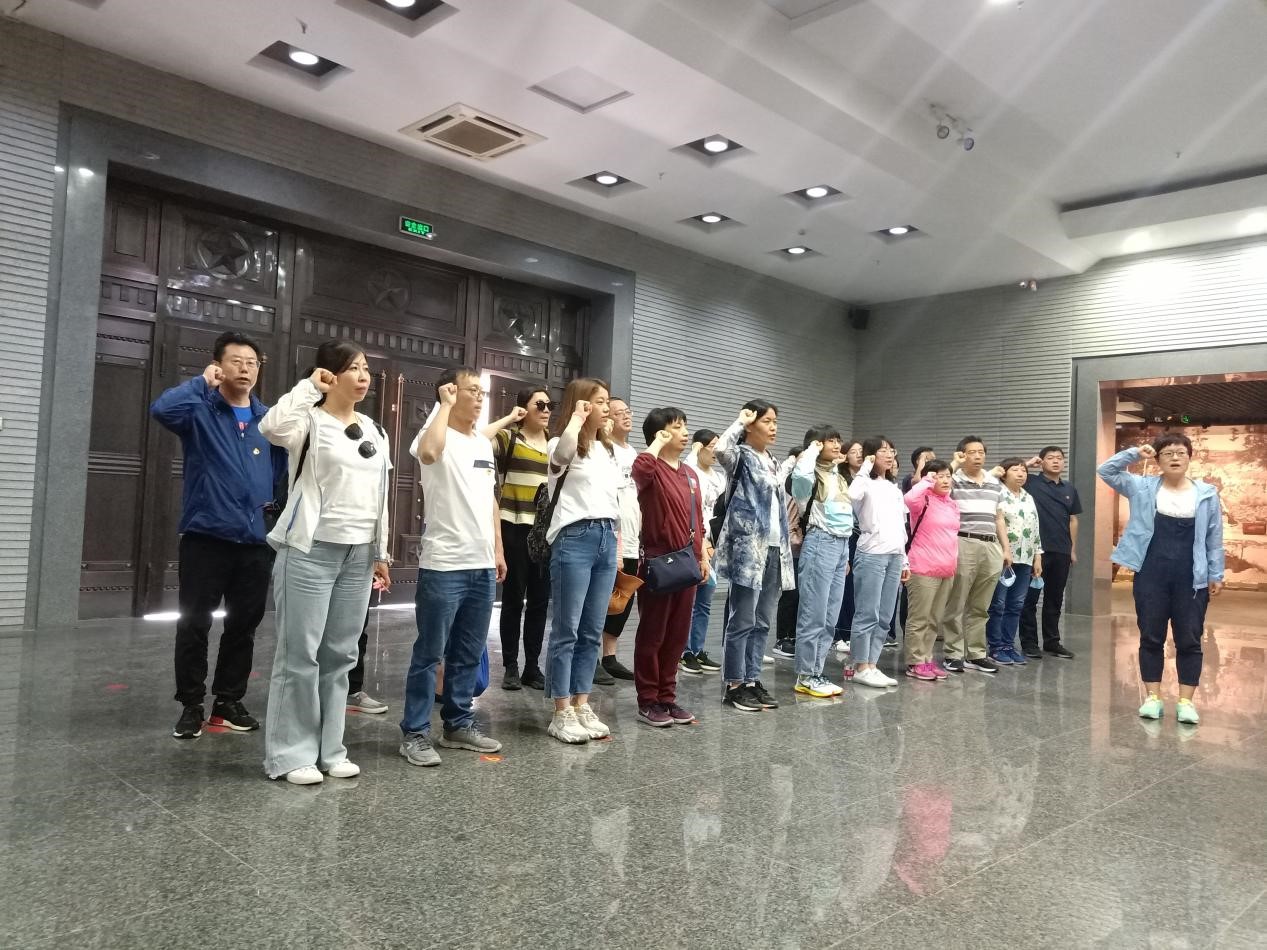下午,全体党员赴晋察冀边区革命纪念馆进行现场学习教育,在讲解员生动的讲解下,党员们再次回顾了中国共产党走过的峥嵘岁月,深刻感受到革命先烈坚定的革命精神和大无畏的牺牲精神,思想上受到一次深刻洗礼。在鲜艳的党旗下,教工党支部书记曹琳同志带领全体党员重温入党誓词,在党旗下接受心灵的净化和洗礼,共同感悟共产党员初心和使命。