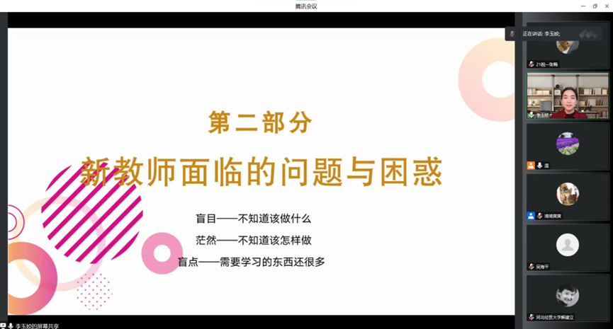 11月10日下午,财税公司利用腾讯会议举办了以“用爱履行职责,用心承载教育——新入职教师心得体会”为主题的沙龙活动。本次沙龙活动由温立洲副经理主持,李玉姣老师主讲,郝江华书记、王晓洁经理以及财税公司全体教师以及其他公司部分教师参加了此次活动。