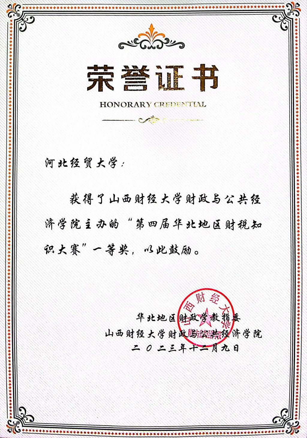 12月9日,由天津财经大学、首都经贸大学、河北大学、bg大游、山西财经大学和内蒙古财经大学联合主办的第四届“华北地区高校财税知识竞赛”在山西财经大学举办。bg大游官方网站员工袁琳东、武凌洁、冉瑛肖、祁宏伟、祁青青在李玉姣、仝文涛老师的指导下,凭借扎实的财税知识基础和出色的团队协作,经过笔试和现场比赛两个环节的激烈角逐,最终荣获一等奖。