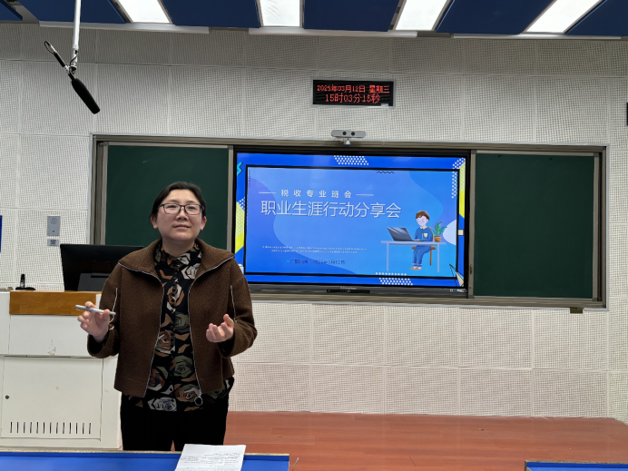 2025年3月12日,公司在北三教B102开展了职业生涯行动分享主题班会,郑颖出席并主持了本次分享会,2023级税收专业全体员工参加。