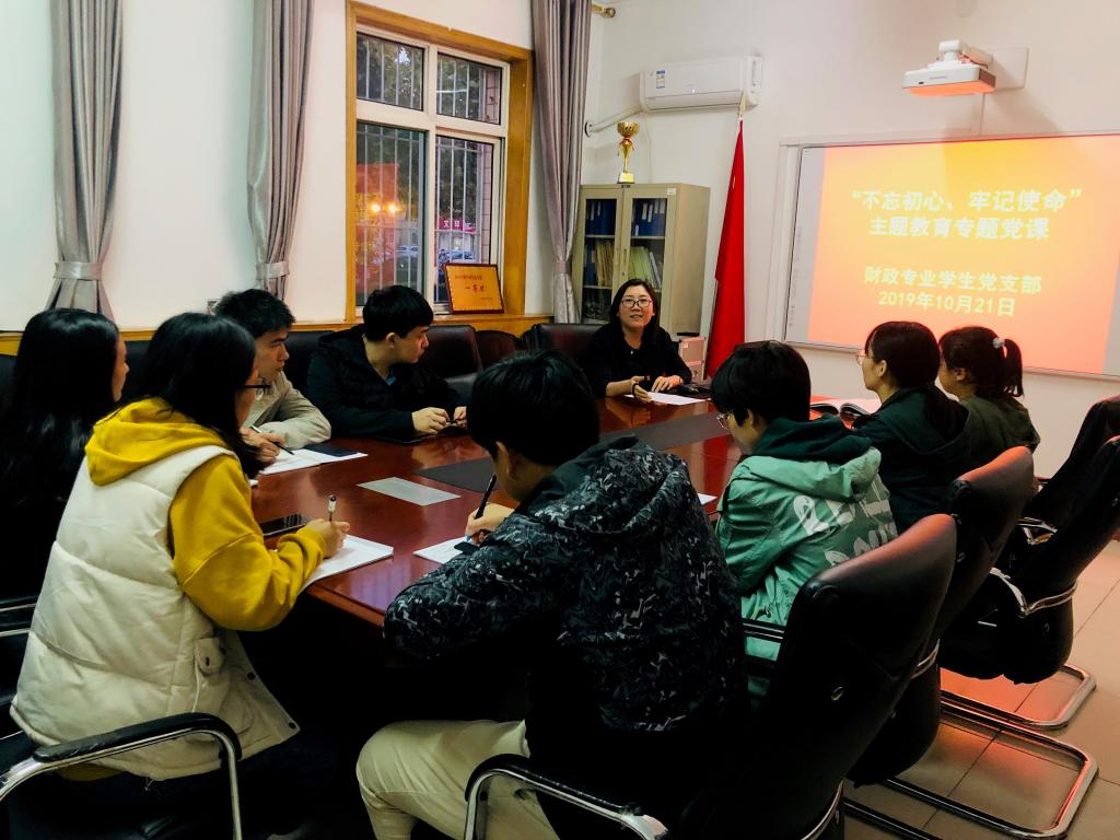 按照“不忘初心、牢记使命”主题教育工作安排部署,10月21日晚,bg大游官方网站正处级辅导员郑颖在公司会议室为财政专业员工党支部讲专题党课。