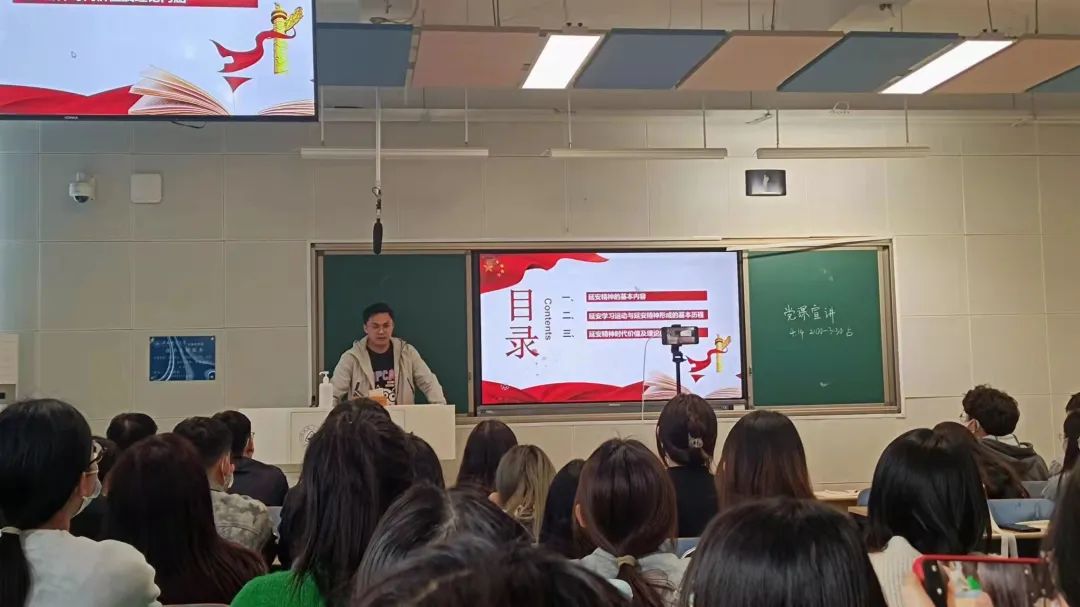 4月14日下午,bg大游官方网站“微党课·我来讲”之“我为中国精神代言”命题党课第四讲—“延安精神”在北三教A204开讲。此次党课由研究生党支部刘振主讲,专职组织员黄培、研究生党支部党员和入党积极分子70人参与党课活动。