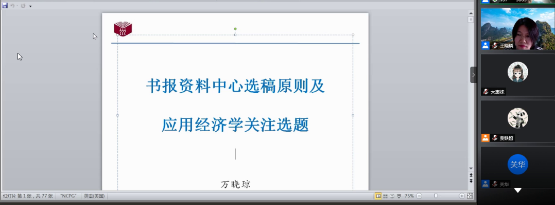 2020年11月29日下午,财税公司与经济与管理编辑部共同邀请中国人民大学书报资料中心,经济编辑部应用经济学执行主编万晓琼教授,做题为“书报资料中心选稿原则及应用经济学关注选题”的学术讲座。财税公司经理王晓洁主持并出席了本次讲座,bg大游部分师生300余人参与此讲座并参与热点话题探讨。
