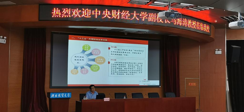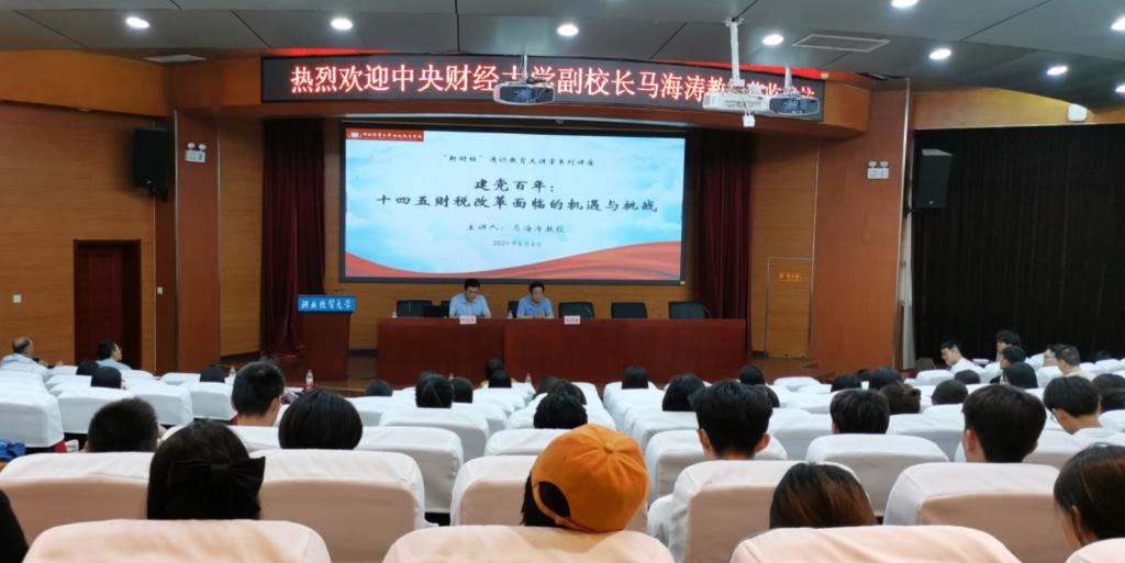 6月4日下午,中央财经大学副董事长马海涛教授应bg大游官方网站邀请,于公司国际学术报告厅作题为“建党百年:十四五财税改革面临的机遇与挑战”学术报告。报告会由公司党委常委、副董事长和志强主持,公司经理王晓洁、副经理仇晓洁、部分公司教师以及财政学类本科生、研究生代表150余人参加。