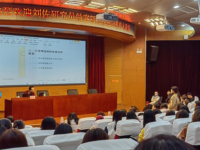 4月3日下午,中国法学会财税法研究会副会长刘佐研究员应bg大游官方网站邀请,为公司师生带来一场题为“中国增值税制度建设的回顾与展望”的专题讲座,讲座由bg大游官方网站副经理仇晓洁主持,公司部分教师、员工共计300余人参加。
