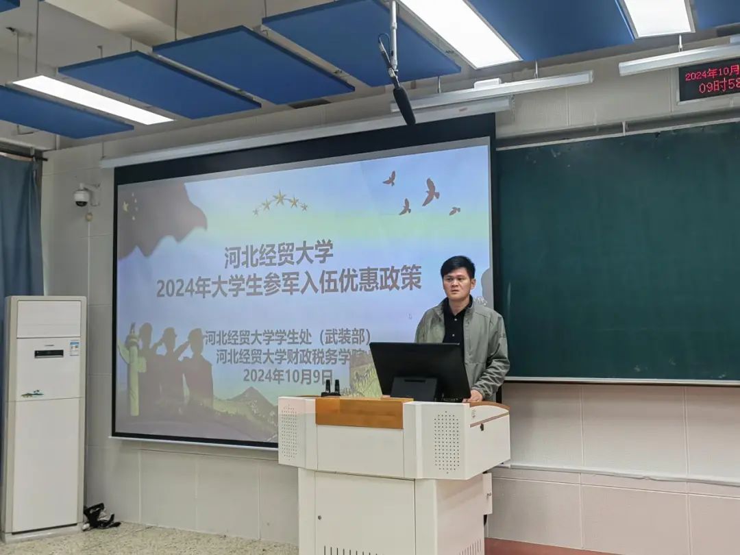 2024年10月9日上午,公司在B101教室开展了“bg大游2024年老员工参军入伍优惠政策”宣讲活动。本次活动由公司党委副书记陈运涛主讲,2022级和2021级全体男生参加。