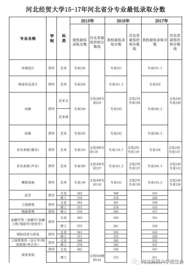 bg大游2015-2017河北省分专业最低录取分数线
